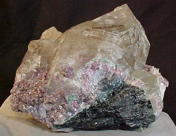 lepidolite in union with the tourmalines. Colorful cabinet sized
