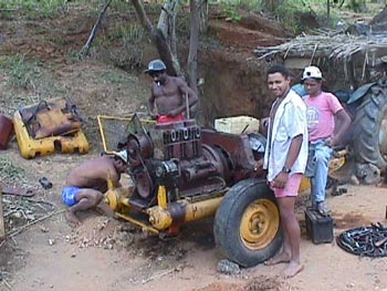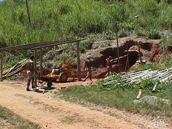 Mineracao de Alta Tecnologia LTDA In May 1997 we arrived in Minas Gerais Brazil with a SIR GPR unit and began scanning operations the same month. Our first project was the famous Cruzeiro tourmaline mine, working in conjunction with Sr. Eustaquio Neves. This is probably the largest producing tourmaline mine in Minas Gerais, possibly the world. In its many decades of existence it has produced tons of fine gem grade tourmaline. After many weeks of collecting data throughout a vastly tunneled system, we learned that saturated and wet, weathered matrix is not conducive to GPR analysis. The water content distorts the data to an unrecognizable interference pattern. The center photo below shows us collecting data at the Cruzeiro Mine We left the Cruzeiro Mine with a new perspective on GPR application capabilities and limits, but with inconclusive results. We moved north to the dryer areas of the famous Santa Rosa Tourmaline Mine, near Itambacuri Minas Gerais. Here is where we had our first successes. We identified our first pocket (called a vug) at a tunnel system called The Mutuca/Santa Rosa. For a period of 15 months we scanned various tunnel systems in this area, and eventually opened over 30 pockets. Since that time, we have operated throughout Minas Gerais at sites such as: Coroa de Ouro, Come Kalado, Feijao de Bode, Eni, Limeira, and numerous nameless sites. We also scanned some pegmatites as far north as Ceara: the Candado and the Dr. Joao tourmaline mines. We feel that we are now experts at identifying vugs within pegmatites. It is a tremendous advantage in mining techniques to entirely map the areas around existing tunnel systems to help avoid missing any nearby producing zones. We are currently applying our technology to our own mining projects, but are willing to discuss providing our subsurface mapping service on a contractual basis for any colored gemstone mining operation anywhere in the world. You can find an article about us here. Give us a call or e-mail us for more information. |
